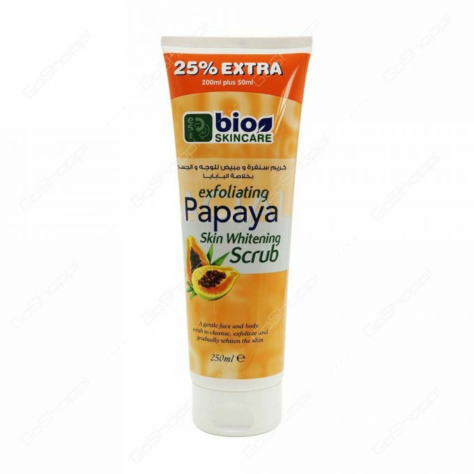 Bio Skincare Papaya Scrub is all in one cleanser, Scrub and skin whitening product. With daily use, This formulation will exfoliate and cleanse skin while the active ingredients gently whiten, to reveal a healthy, Lighter complexion.