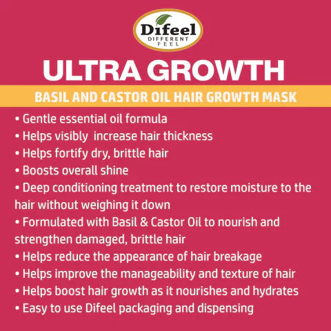Difeel Ultra Growth Basil & Castor Oil Pro Growth Hair Mask 12 Oz