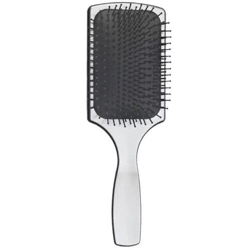 - The Paddle brush with ball-tipped nylon bristles in 13 rows detangles thick or coarse hair effortlessly. The soft rubber cushion pad follows the shape of the scalp and therefore minimizes scalp damage or hair breakage. This antistatic paddle brush is recommended for long thin to normal hair and can be used on a daily base.